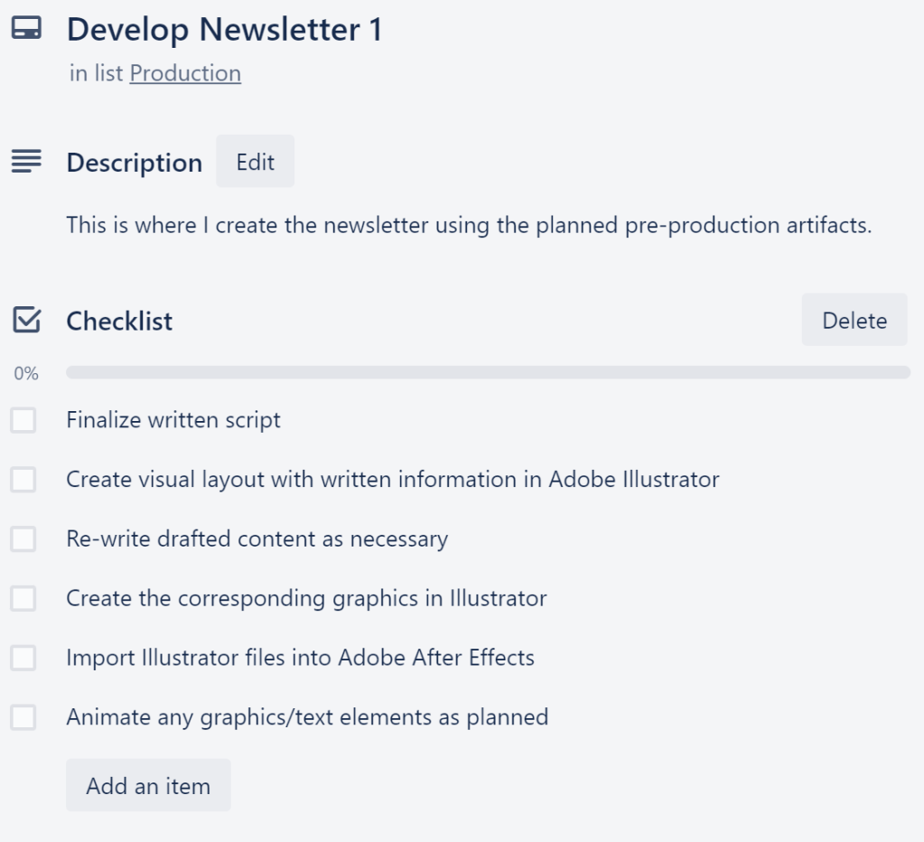 To begin my process, I put together a script of what I would say to the participants of the study. This allowed me to provide them with all of the necessary information that they would need, including disclaimers about their actions and asking consent that they be recorded. If they agreed, I also created a consent form for them to sign and return back to me.